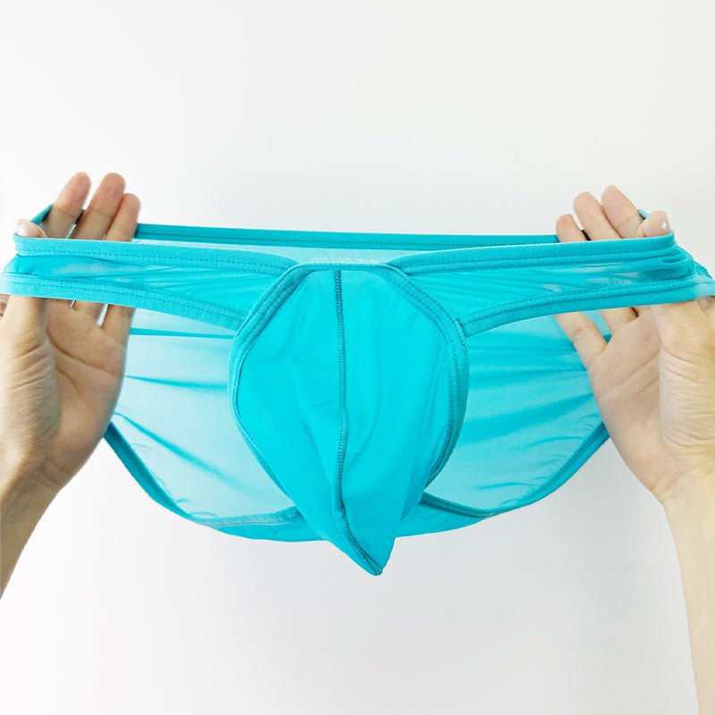 Breathable Mesh Transparent Pouch Men's Low-Rise Briefs - Comfortable High-Cut Underwear for Active Wear & Sports (Separate Pouch Design)