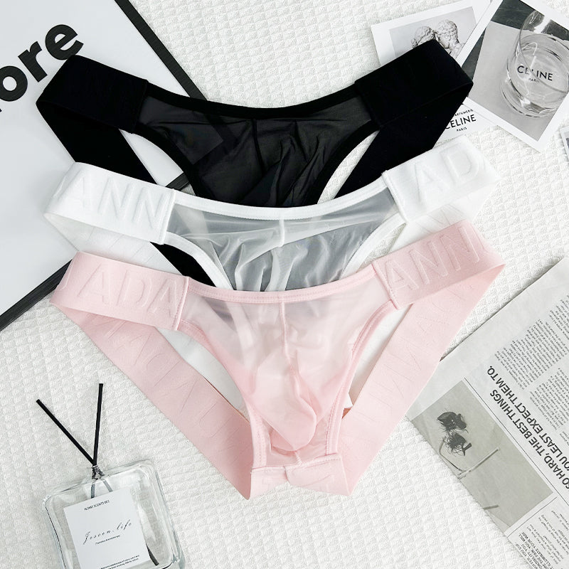 Breathable Sheer See-Through Men's Thong Underwear - Low-Rise Comfortable G-String with Embossed Oriental Pattern, No Need to Remove for Convenience